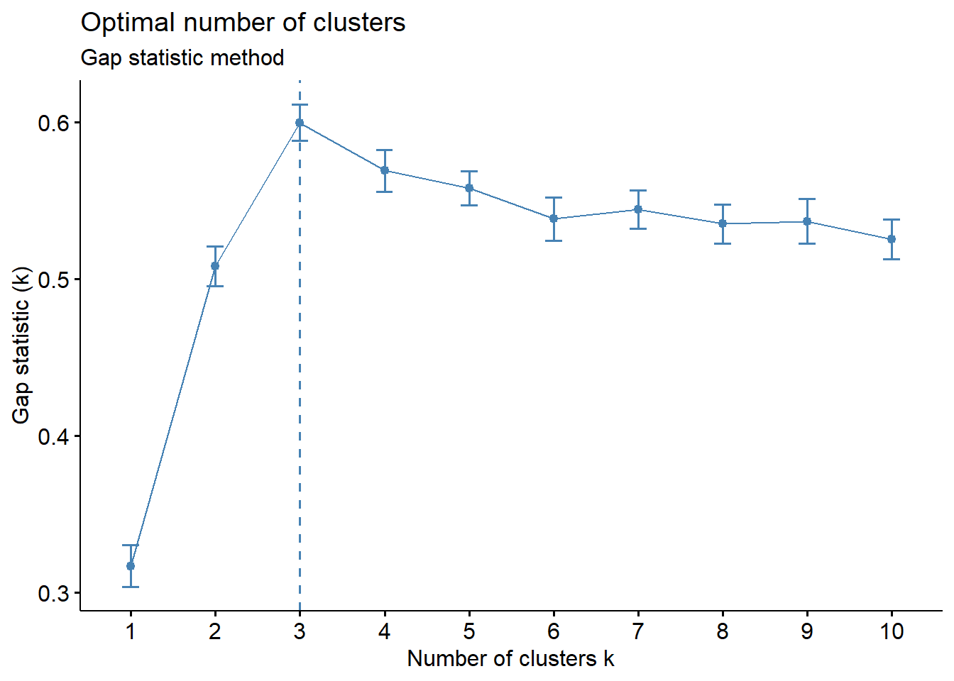 labs(subtitle = "Gap statistic method") Warning: pas de convergence en 10 itérations