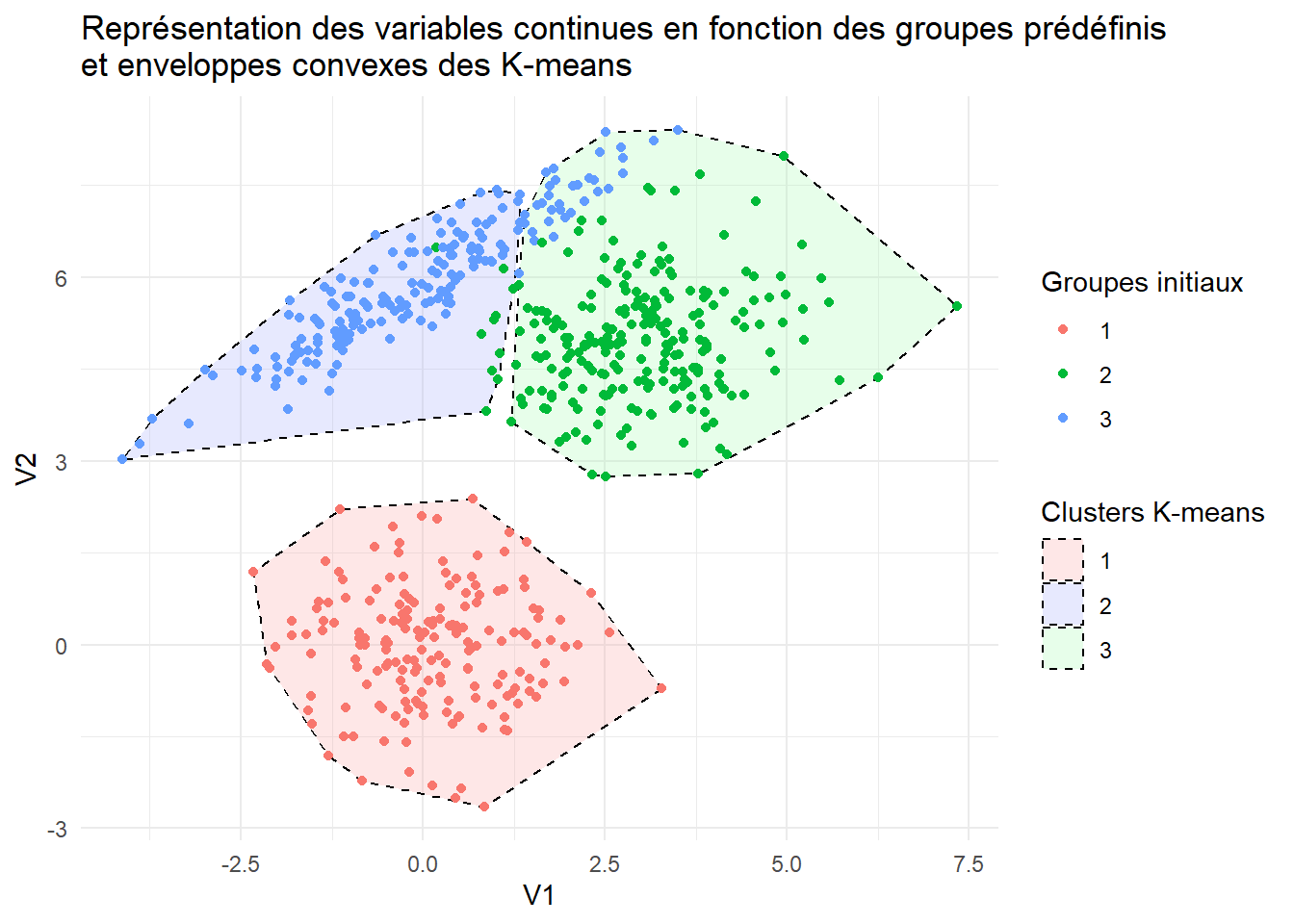 labs(fill = "Clusters K-means", color = "Groupes initiaux")